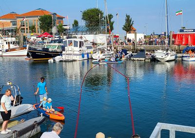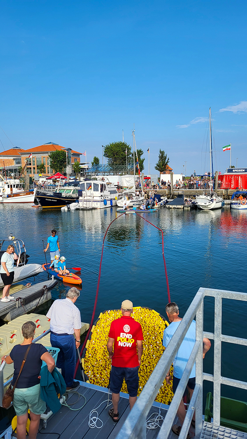 Ein buntes, vollgepacktes Programm und ein Wetter, das für das diesjährige Hafenfestival am Wyker Binnenhafen nicht hätte besser sein können: So wurde aus diesen zwei tollen Tagen mit jeder Menge Livemusik, Schlemmen und vielen Kinderaktionen ein richtiges Sommerfest, das viele Besucher besonders zu den musikalischen Highlights mit der plattdeutschen Band »Godewind«, der Santiano-Tribute-Band, der Partyband »Jetlags« und dem Singer/Songwriter Mattis Brodersen anlockte. Mit Matrosenbeats und Shantybrass brachte die Hamburger Band »Mahoin« auf der Bühne und als Walking-Act richtig Schwung ins Geschehen. Auch das Entenrennen des Rotary Club Wyk auf Föhr erwies sich einmal mehr als ein Besuchermagnet und großer Erfolg für den guten Zweck.
