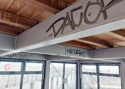 Und auch der Pavillon der neuen Mittelbrücke – gerade ein Jahr alt geworden – musste Bekanntschaft mit den respektlosen Vandalen machen: An mehreren Stellen wurde der Ort, an denen Menschen vor Regen Schutz finden, in Ruhe den Blick genießen wollen oder sogar heiraten, großflächig beschmiert.