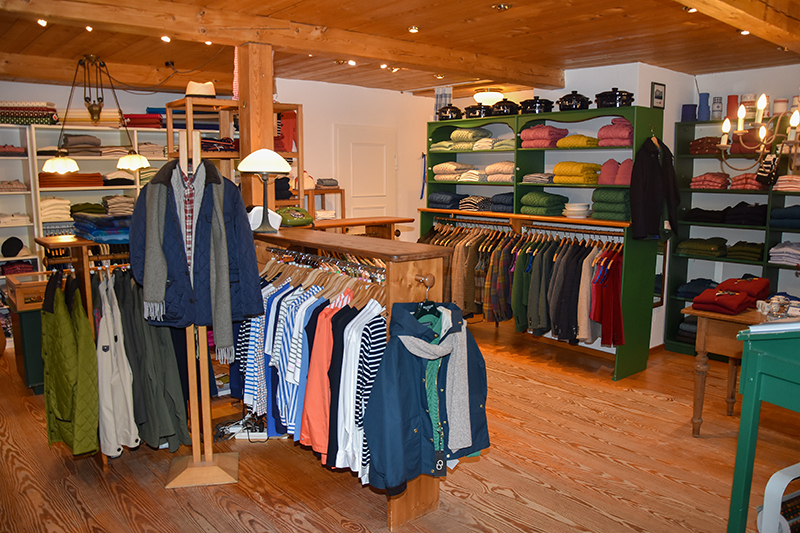 Tatsächlich besticht das Angebot durch Qualität, Tradition und Trends. Es gibt beispielsweise Harris-Tweed-Jacken für Damen und Herren von »Wellington of Bilmore«, Hemden und Blusen sowie Strickmode von »Maerz« in München und irische Strickwaren. »Alles chic und sportlich kombinierbar«, erklärt Sina Arfsten. Die bekannten Ringelshirts und maritimen Jacken, wie man sie aus der Bretagne kennt, werden von der Marke »Armor Lux« geführt.