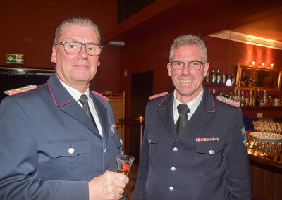 Stoßen auf den Ball an: Bürgermeister Uli Hess (li.) und Wehrführer Jörg Carstensen
