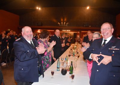 Bevor die Ballsaison auf der Insel von der Wyker Feuerwehr eröffnet wurde, begrüßte Wehrführer Jörg Carstensen zuerst einmal die Gäste aus Politik, vom Rettungsdienst und der Polizei sowie Jan Hansen, den Wehrführer der Nachbarwehr in Wrixum. Amtswehrführer Hauke Brett war dabei und auch Ehrenwehrführer Kai Sönnichsen. Im Verlauf des Abends wurden Matthias Schlender und Holger Frädrich von Wyks stellvertretender Bürgermeisterin Birgit Hinrichsen für 40 Jahre Feuerwehr mit dem Brandschutzehrenzeichen in Gold am Bande des Landes Schleswig-Holstein geehrt.