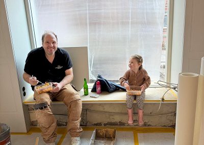 Mit beispielsweise Natursteinböden, Fischgrätenparkett und Holzbalkendecke soll das neue Büro den Charme eines Reetdachhauses widerspiegeln. »Unser Anliegen war, unsere Kunden in einer besonderen Wohlfühlatmosphäre beraten zu können«, erklärt Ranck-Wellingerhoff. Zusätzlich sollen die Geschäftsräume eine Art von Ausstellung darstellen. Um das zu präsentieren, was man als Tischlerei und Bauunternehmen alles in der Lage ist zu leisten.