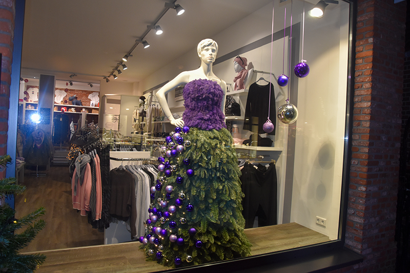 Ein weiterer besonderer Blickfang in der Mittelstraße ist eine Schaufensterpuppe, die von den Mitarbeiterinnen in kreative Handarbeit ein weihnachtliches Kleid aus Tannenzweigen und Weihnachtskugeln »geschneidert« bekam. Einfach einmal bummeln gehen. Dann ist es leicht zu finden.