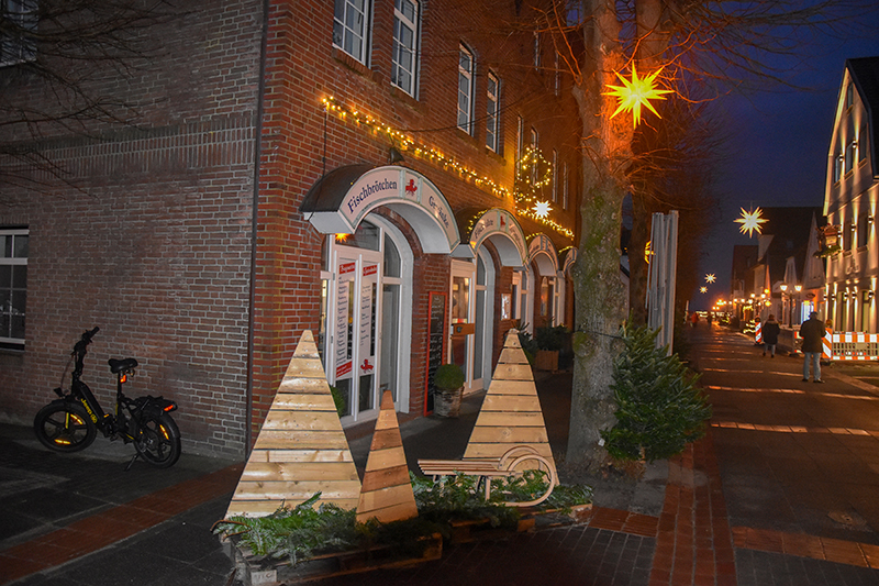 In Eigenfinanzierung hatten sich die Geschäftsleute in der Mittel- und in der Wilhelmstraße bereits zuvor Herrnhuter Sterne zur Dekoration von Geschäften, Schaufenstern und Straße angeschafft. Und auch die Weihnachtsbäume, die ihnen von der Stadt zur Verfügung gestellt werden, sind von ihnen wieder weihnachtlich geschmückt worden. Ergänzt wird das weihnachtliche Ambiente dieses Mal mit dekorativen Holztannen, die in der Tischlerei M. Jensen in Alkersum angefertigt wurden. Die Drahtseile wolle man über Weihnachten hinaus auch für Dekorationen beispielsweise im Frühjahr und Herbst nutzen, so Claudia Prinzensing von den »Marktmädels«, die in der Mittel- und Wilhelmstraße für Aktionen und Aktivitäten sorgen.