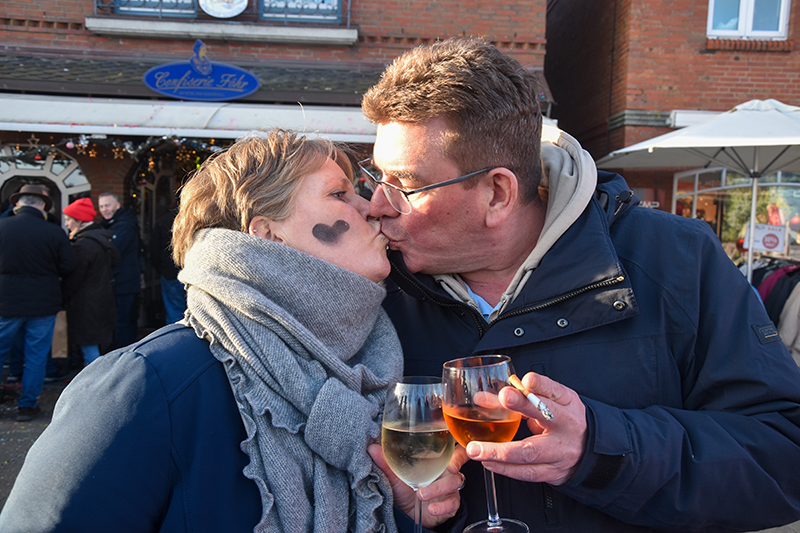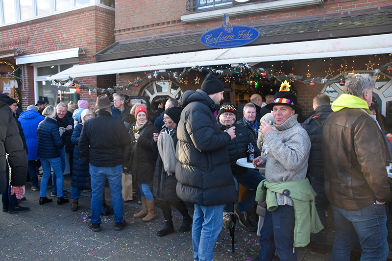 Leise war es auf der Insel trotzdem nicht. Dafür sorgte allein schon die Flensburger Sambagruppe »Policia Do Samba«, die mit ihren heißen Rhythmen bereits am Vormittag die Feierlaune anheizte. Die Sambagruppe hatte auch diese Mal die Schornsteinfeger aus Nordfriesland begleitet, die seit 2009 auf die Insel kommen, um Glück fürs neue Jahr zu wünschen und dabei Geld fürs Wilhelminen-Hospiz in Niebüll zu sammeln. Wurde Silvester 2024 die 100.000 Euro-Marke geknackt, kamen jetzt noch einmal weitere 20.000 Euro hinzu.