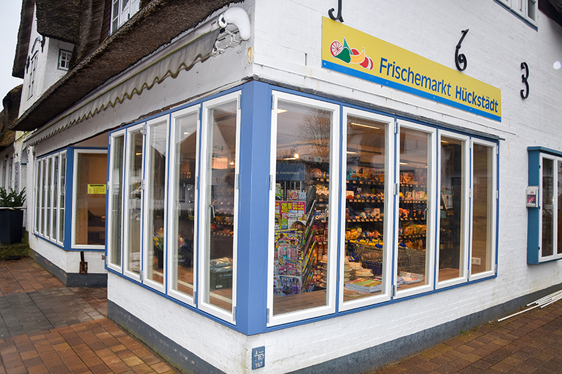 Damals als Kolonialwarenhandel gegründet, befindet sich der Frischemarkt Hückstädt in Nieblum seit nunmehr 1898 in Familienbesitz. Immer wieder – von Generation zu Generation – wurden Sortiment und Warenpräsentation weiterentwickelt und den jeweiligen zeitgemäßen Bedürfnissen angepasst. Zum 1. November letzten Jahres fand ein erneuter Generationswechsel statt, übernahm Geeske Christiansen den Frischemarkt von ihrer Mutter Anja Hückstädt und stellte die Weichen jetzt ihrerseits auf Zukunft. Und das nicht nur durch den Austausch der 64 Jahre alten Schaufensterfront durch eine komplett neue und eine moderne, vollautomatische Eingangstür. Unter hohem technischem Aufwand wurde das persönliche Einkaufserlebnis zu den normalen Öffnungszeiten mit dem automatisierten Selbstbedienungseinkauf (SB) eines Hybridmarkts kombiniert. Also einkaufen, wenn eigentlich geschlossen ist.