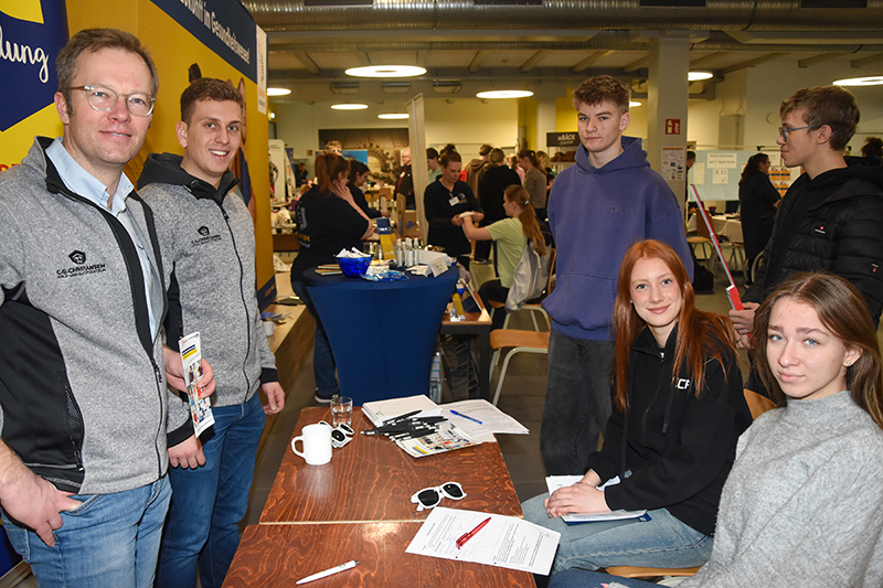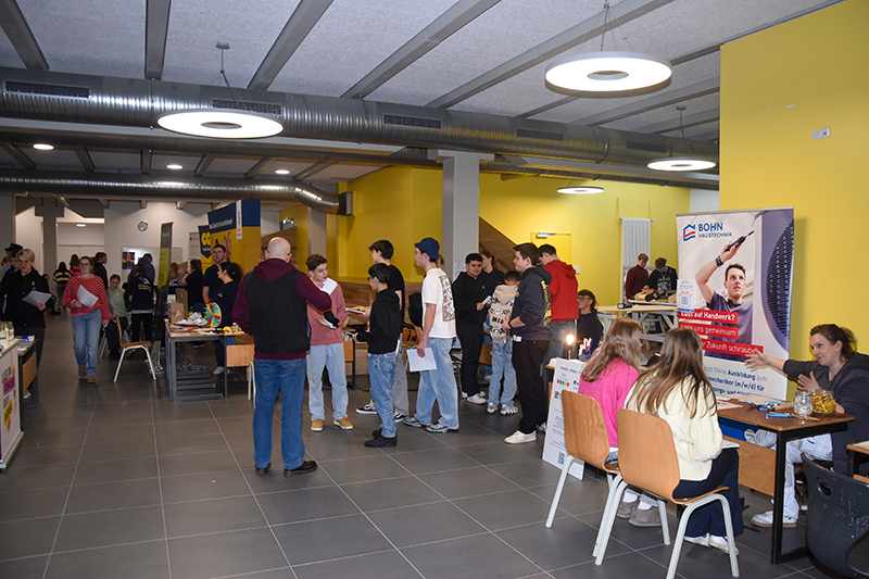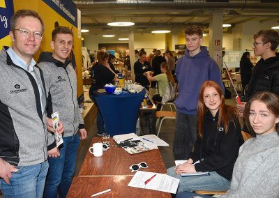 Ungefähr 120 Jugendliche der 8. bis 11. Klassen hatten die Gelegenheit zu entdecken, welche spannenden Karrierewege sie nach der Schule einschlagen könnten. Und das in zwei Gruppen, da der Unterricht auch an diesem Tag weiterlief. Jede Gruppe wurde von Schuldirektor Ingo Langhans begrüßt und motiviert, das Informationsangebot anzunehmen. Und das taten die Schülerinnen und Schüler sowie einige Eltern auch. Die Resonanz auf die einzelnen Infostände war immer sehr groß. Auf großes Interesse stieß ebenfalls der Rettungswagen, mit dem der Rettungsdienst draußen vertreten war.