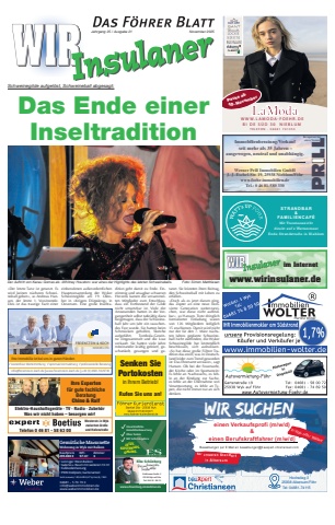 %u00bbDer letzte Tanz ist getanzt. Es wird keinen n%u00e4chsten Schweineball geben%u00ab, so Andreas Hansen, der letzte 1. Vorsitzende. Dies ist das traurige Fazit einer einberufenen au%u00dferordentlichen Hauptversammlung der Wyker Schweinegilde am 19. Oktober in %u00bbKr%u00f6gers D%u00f6rpskrog%u00ab in Oevenum. Eine gro%u00dfe Inseltradition geht damit zu Ende. Einstimmig und unsagbar schweren Herzens kamen die versammelten Mitglieder zum Entschluss, dass ein Fortbestand der Gilde nicht umsetzbar ist. Viele der Anwesenden hatten in der Vergangenheit selbst tatkr%u00e4ftig dazu beigetragen, dass der Schweineball Jahr um Jahr ein rauschendes Fest wurde. Sie hatten beim Schm%u00fccken geholfen, Sketche aufgef%u00fchrt, Tombola-Gewinne eingesammelt und die Lose verkauft. Sie hatten viele Jahre miteinander kr%u00e4ftig gefeiert, geschunkelt, gesungen und getanzt. Sie leisteten ihren Beitrag, den Schweineball mit Leben zu erf%u00fcllen.%u00bbDoch als es jetzt darum ging, das Zepter an eine neue motivierte Generation weiterzureichen, war diese nicht auffindbar%u00ab, so Hansen. Trotz dringlich formulierter Einladung waren von 126 Mitgliedern lediglich 15 erschienen. Damit wird nicht nur der f%u00fcr den 7. M%u00e4rz n%u00e4chsten Jahres geplante Schweineball nicht stattfinden, die Wyker Schweinegilde hat letztendlich beschlossen, sich aufzul%u00f6sen. %u00bbSo hat diese gro%u00dfe F%u00f6hrer Tradition das ereilt, was in Deutschland leider zum Trend geworden ist: Das Ehrenamt verwaist%u00ab, sagt Hansen. Ob bei der Feuerwehr, der Kirche oder im Sportverein: Es fehle an Nachwuchs, es fehle an der Bindung zur Sache, es fehle an der %u00dcbernahme von Verantwortung, es fehle an Typen, die nicht immer nur an sich denken. Jahrgang 25 / Ausgabe 21November 2025Schweinegilde aufgel%u00f6st, Schweineball abgesagt:Das Ende einer Inseltradition...so geht das.Hochstieg 325938 Alkersum/F%u00f6hrTel: 04681-74115einenVerkaufsprofi(m/w/d)&einenBerufskraftfahrer(m/w/d)inVoll-oderTeilzeitWir suchenBewerbungenperE-Mailanbewerbungen@bauxpert-christiansen.comf%u00fcrunserenStandortinAlkersumHochstieg 3einenBerufskraftfahrer(m/w/d)oderBewerbungenperEMailanbewerbungen@bauxpertchristianf%u00fcrunserenStandortinAlkersumeit)nsen.comTOYOTA YARIS NEU!HYBRIDTOYOTA YARIS NEU!HYBRIDTOYOTA YARIS NEU!HYBRIDTOYOTANEU!HYBRID%u0005 #%u000ffflfiffl%u0014!%u000f%u0014',/!%u001a*%u000b%u0014'ff/%u0017/(%u001a%u00140#%u001a%u0014!%u0012 !%u0014/,'fi /!%u0013 /!%u000ffl%u000e!%u001affl%u001a&%u000c%u0014'!%u0014' %u0008'fflfifi %u0005 #%u000ffflfiffl%u0014! %u0003 %u000f%u0004%u0006&ffi%u0006&ffi%u0001(%u0010fl%u0014fiffi%u0009,'& %\000&%u0017#%u0014fl'ffiffl #%u000ffflfiffl%u0014!&%u0013%u0014%u0014fi&%u0011 1 %u0019) %u0015%ffi%u0018%u00151 --1%u0003%u0004%u0001%u0001%u0009%u0007%u0004%u000c%u0004%u0008 %u0005%u0003%u000c%u0004%u0006%u0008%u0004%u0008 %u0003%u0007%u0004%u0008seit mehr als 35 Jahren %u2013Gem%u00fctliche Maisonette Wohnung in Wyk mit Balkon 04681 %u2013 5 70 70 3info@weberimmobilien.dewww.weberimmobilien.de%u2022 sonniger West-Balkon%u2022 Galerie u. Raum mit weiteren 10 m%u00b2%u2022 Fu%u00dfbodenheizung%u2022 PKW-Stellplatz, GartenanteilKaufpreisWfl.Zimmer295.000 %u20ac57 m%u00b2 3 Verbr.ausweis, 140,6 kWh/(m%u00b2*a), Gas, Bj. 1980Westerstr. in Wykzwischen Gro%u00dfe und Hafenstra%u00dfeIhre Expertenf%u00fcr gute fachliche BeratungChino & RalfElektro-Haushaltsger%u00e4te %u00b7 TV %u00b7 Radio %u00b7 Zubeh%u00f6rWas wir nicht haben %u2013 besorgen wir!Telefon 0 46 81 - 58 63 00info@freienstein-koch.de|www.freienstein-koch.de+49 (0) 4681-5029790%uf050 kostenfreie Wertermittlung %uf050optimale Vermarktung %uf050professionelle BeratungFREIENSTEIN & KOCHIMMOBILIENIhre Immobilie ist bei uns in guten H%u00e4ndenwww.schoenberg-immobilien.deEibe Sch%u00f6nbergBoldixumer Stra%u00dfe 325938 Wyk auf F%u00f6hrTel. 046 81 - 88 55Der einheimische InselmaklerUnverbindliche Immobilienbewertung Ohne Termin Mit Sofort-ErgebnisJETZT. KOSTENLOS.ONLINE. Mobil 0177/6101071Mobil 0177/6101071Senken SiePortokostenin Ihrem Betrieb!Rufen Sie uns an!S T R A N D B A R Ende Strandstra%u00dfe in NieblumSTRANDBAR FAMILIENCAF%u00c9S T R A N D B A R & FAMILIENCAF%u00c9Mit Traumaussichtdirekt auf%u00b4s WattenmeerEnde Strandstra%u00dfe in NieblumWWW.LAMODA-FOEHR.DEBI DE S%u00dcD 30 NIEBLUMTELEFON - 04681 741353Pause ab10. Novemberim InternetDer Auftritt von Kacau Gomes als %u00bbWhitney Houston%u00ab war eines der Highlights des letzten Schweineballs.Foto: Simon Matthiesenwww.wirinsulaner.de